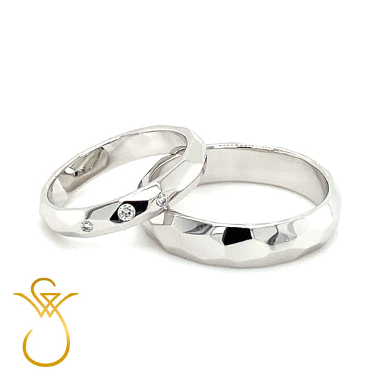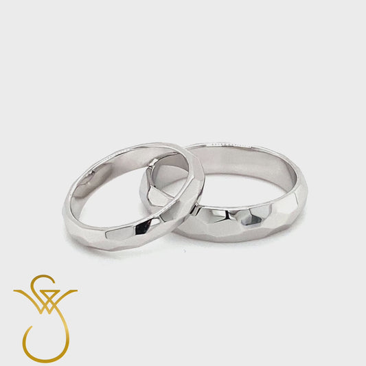 Het gehamerde patroon van onze trouwringen wordt zorgvuldig aangebracht door met de...