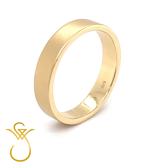 Trouwring Excellent Gesatineerd, 14k geel gouden ring, vlak model, 1.5 mm dik
