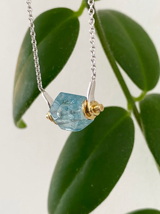 Aquamarijn collier 14k wit goud met ruwe aquamarijn