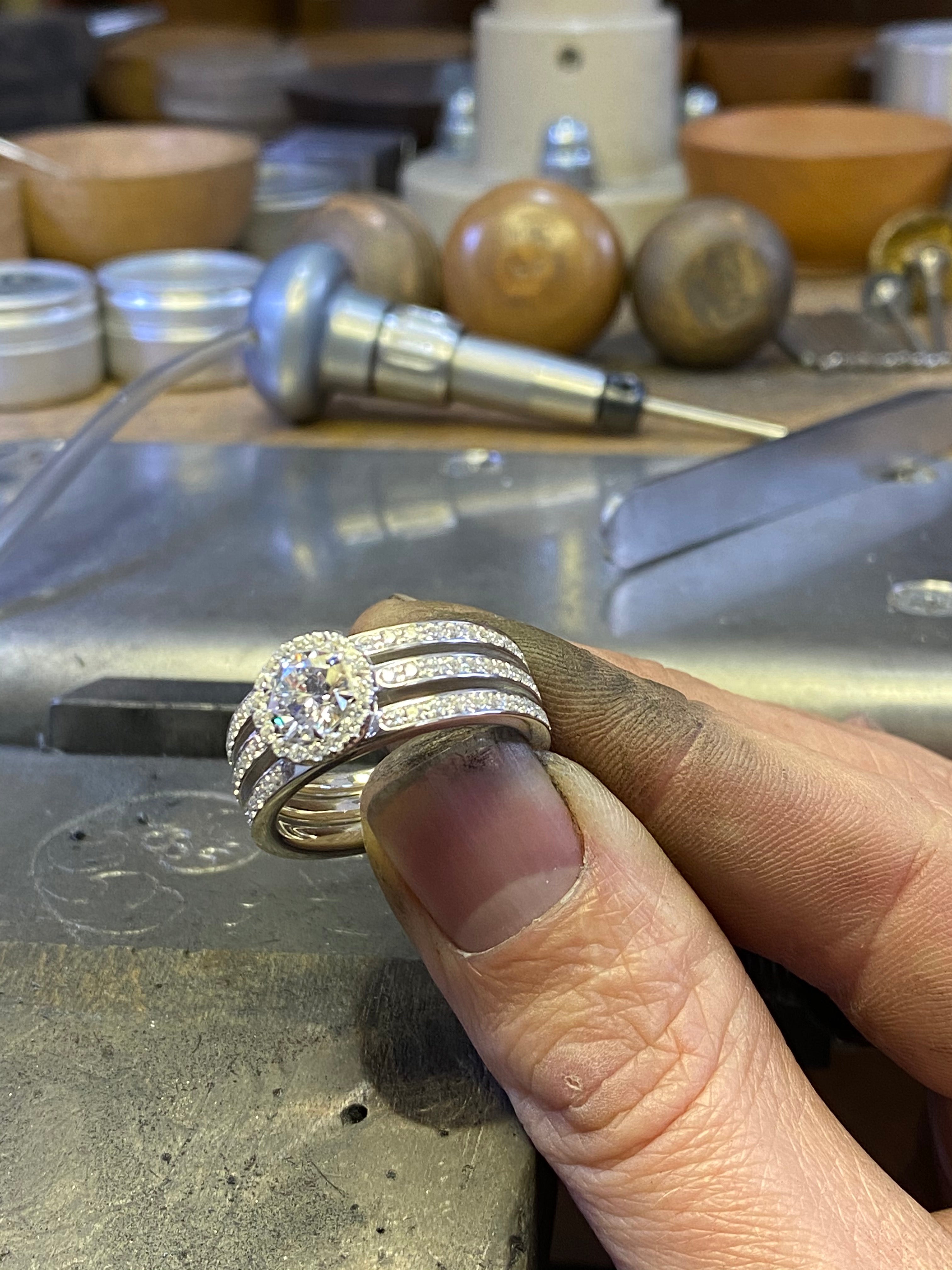 Eigen collectie, trouwringen, werk in opdracht, reparatie, stenen zetten, graveren, knoopwerk. Welkom...