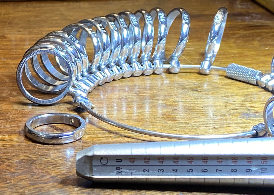 Een van de makkelijkste manieren is om een bestaande ring die lekker zit op te meten aan de binnenzijde, dat kan met een schuifmaat, of neem de ring mee naar ons atelier waar we hem op een ringstok kunnen zetten om de binnendiameter op te meten. Bij het bepalen van de juiste maat kan een millimeter verschil in de breedte al een enorm verschil maken. Hoe nauwkeuriger een maat bepaald kan worden, hoe beter.